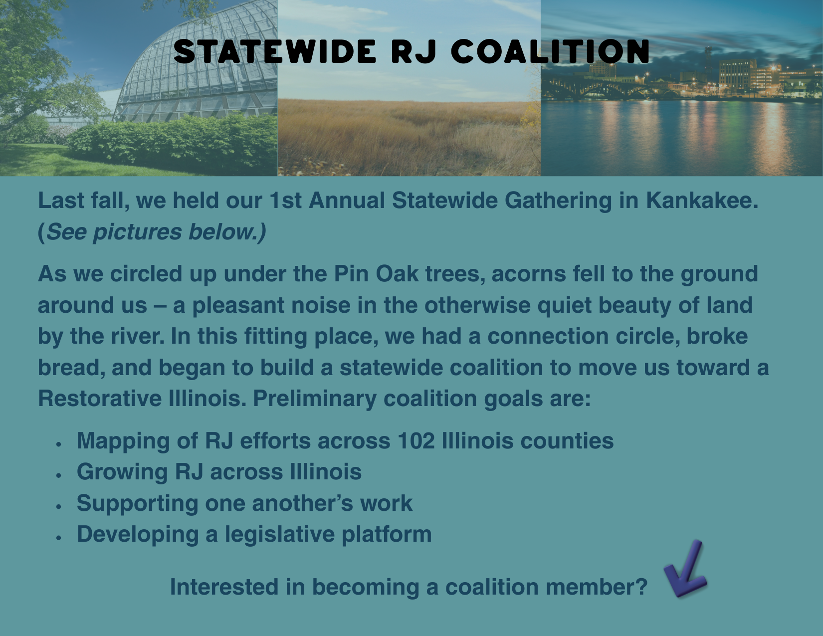 We spoke with an engaged group of people at the League of Women Voters of Oak Park-River Forest about restorative justice and the ways RJ is a growing movement - not merely a moment. We traced the growth of restorative justice across Illinois, highlighting key legislative milestones and RJ’s growing presence in schools, communities, and systems.